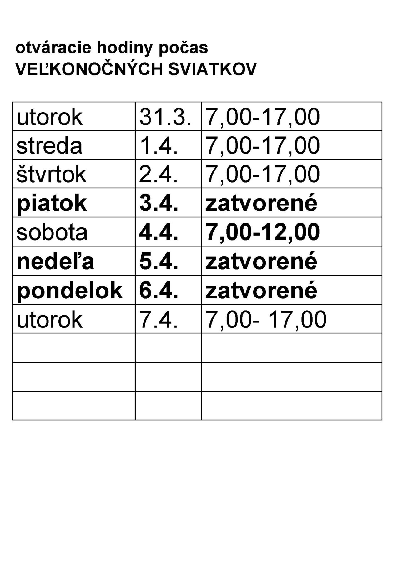 firma KROVMONT ozanamuje otváracie hodiny počas Veľkonočných sviatkov v ich obchodnom dome.