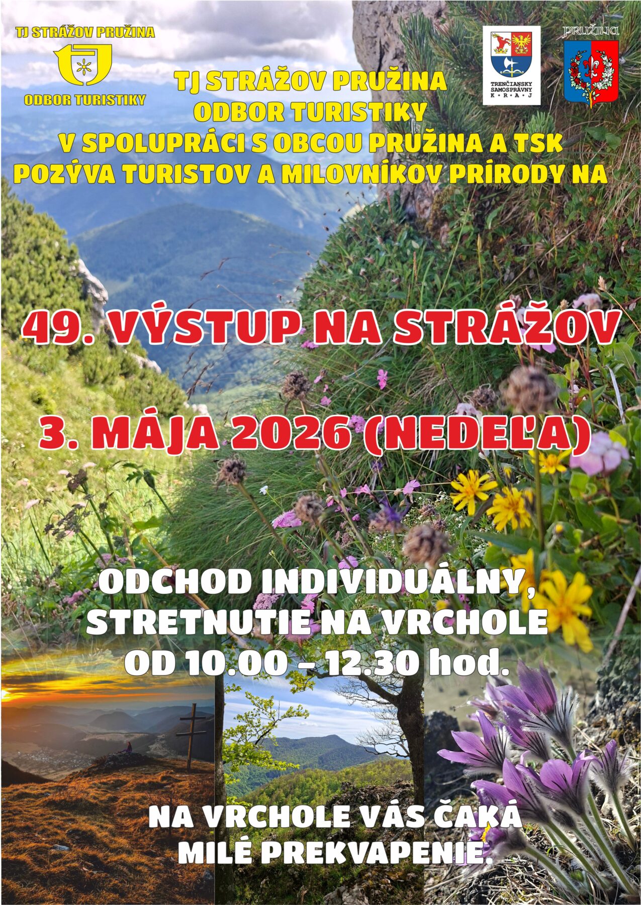 TJ Strážov Pružina – odbor turistiky Vás pozývav nedeľu 3.5.2026 na 49.ročník Výstup na Strážov.